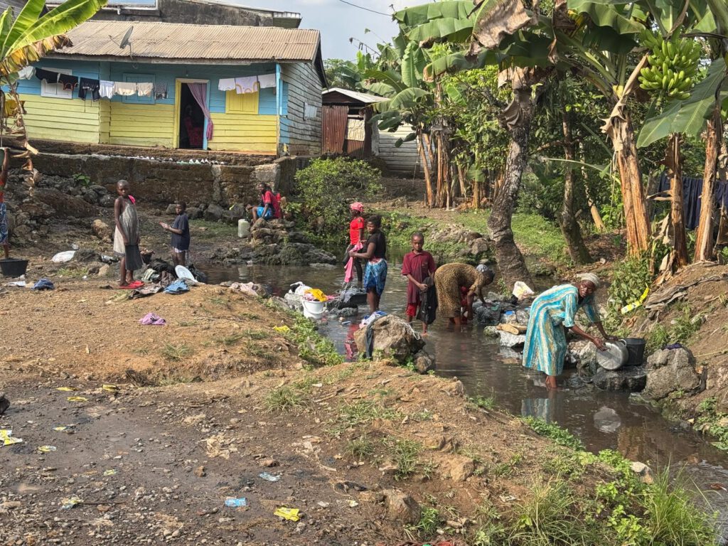 Llegamos a Loum y para nuestra desgracia el firme es el peor de toda la etapa, bajadas de piedras que no nos dejan ir más rápido de cinco por hora. Las motos vuelan sobre ellas sin caerse. Para llegar a la congregación el navegador nos mete por unas calles empinadas y llenas de piedras donde toca empujar. Montones enormes de basura humeante. Durante la etapa hay quemaderos de aceite de palma de un olor penetrante que quita días de vida en cada bocanada. En la ciudad es aún peor, humo de basurero por todo. Casas deterioradas con ropa tendida en unas calles impracticables. No entiendo como la gente puede vivir así y no rebelarse. Después de media hora empujando bici por calles llegamos a una verja cerrada. Desde la casa que hay al lado, una voz nos dice que se han ido de misión a Douala. Nuestra energía de fin de etapa se cae hasta el suelo. Buscamos un hotel en google maps y por suerte, el camino es algo mejor que para llegar hasta ahí. Varias calles de basureros, motos, tiendas, música y salimos a la nacional. Pisamos carretera cerca del orgasmo. Es un cruce con cientos de motos y venta de todo. El hotel está a la vista, el precio es algo caro, pero ya es tarde y aún hay que limpiar las bicis, comer, ducharnos y escribir y editar la etapa.