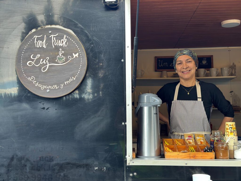 Desde ahí pedaleamos por carretera hacia Tres Ventanas, el perfil es suave hasta una subida de 3km que nos deja en el pueblo y a puertas del camino, de ripio como dicen ellos. Justo al comienzo del camino hay un food truck, en él hay una mujer, se llama Luz, tiene una gran sonrisa y decidimos tomarnos un café antes de afrontar el camino. Tenemos con ella una charla sobre la sostenibilidad, la concienciación medio ambiental de las nuevas generaciones, sobre la deforestación que está afectando en su zona, sobre el impacto de nuestras acciones, sobre muchas cosas y nos quedaríamos charlando con ella felices, pero toca continuar. De repente te encuentras con una persona que vive en un camino forestal, que vende comida en un camión con una visión ecológica, de sostenibilidad mucho más desarrollada que la mayoría de la sociedad y no entiendes como la gente no lo ve tan claro como nosotros. Toca mucho que hacer, de momento ser positivos con que hay puntos de resistencia y que algún día supondrán un punto de contagio. Ella nos dice que hay 30km de ripio, el navegador dice que 15km, veremos quien gana, si la tecnología o vivir ahí.