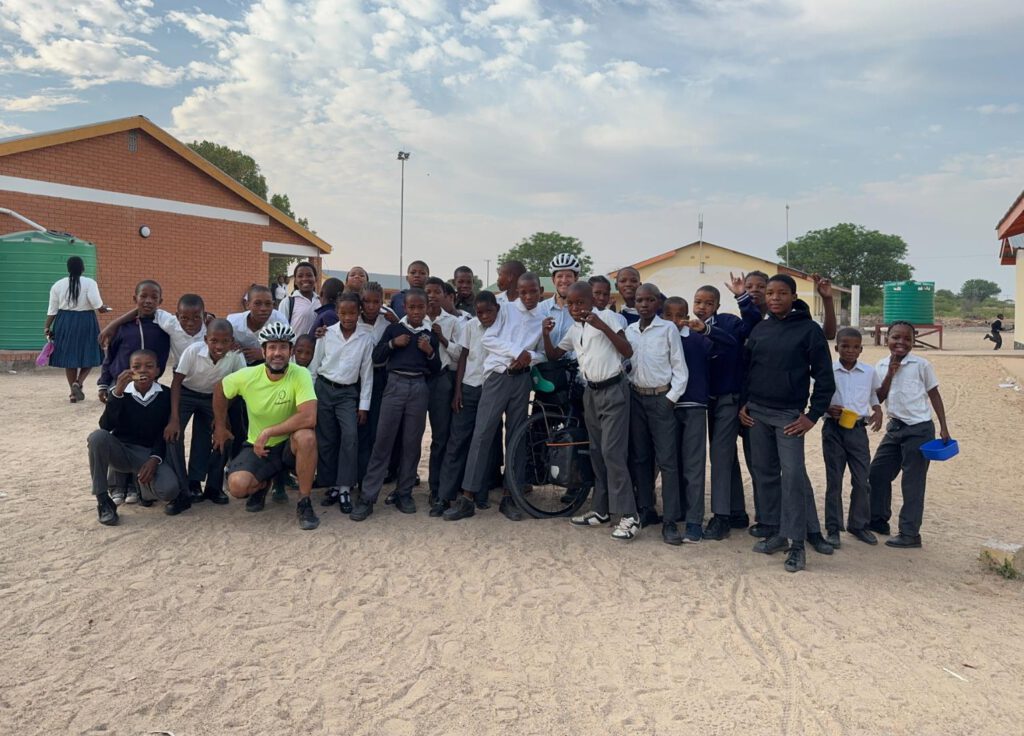 Descansamos muy bien, pero el sol sale pronto e ilumina la clase temprano. A las 6:15 ya hay niños merodeando por el colegio y nos obliga a ir recogiendo todo. En menos de veinte minutos el patio está lleno de alumnos que alborotan, sobre todo cuando nos ven salir de una de las clases. Entonces se acercan a curiosear y las tonterías van en escalada. Antes de entrar a clase les reparten un bollo y un huevo duro. Muchas de las veces las únicas comidas que hacen son ahí. Estos colegios de Botswana tienen mucha calidad en comparación con muchos que hemos visto.