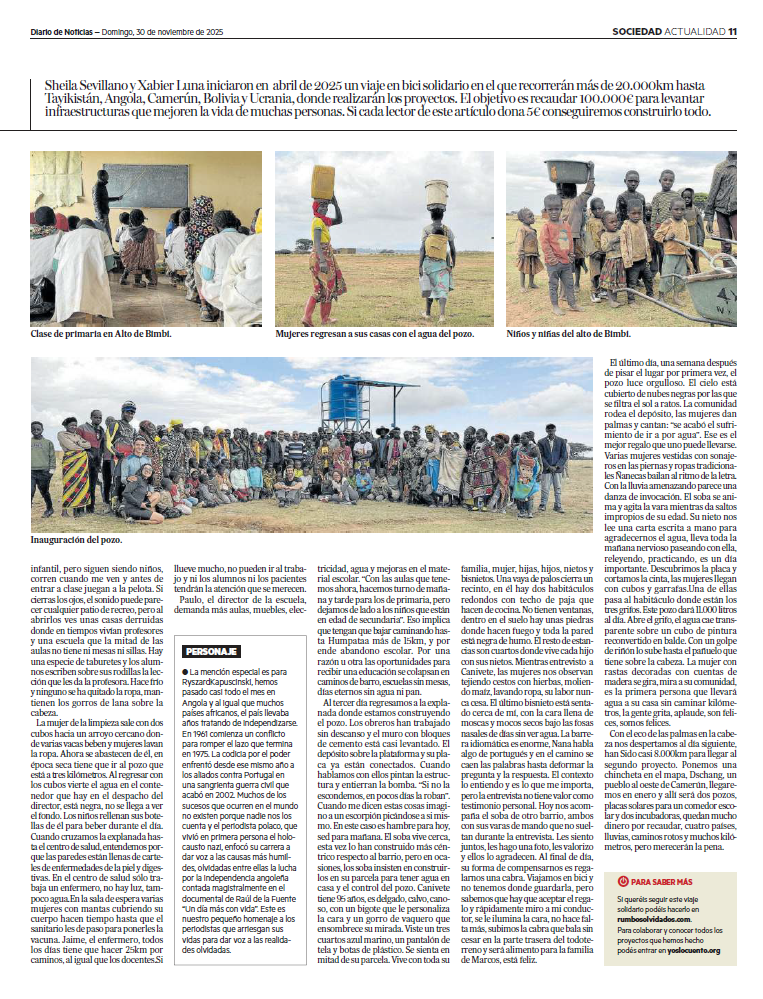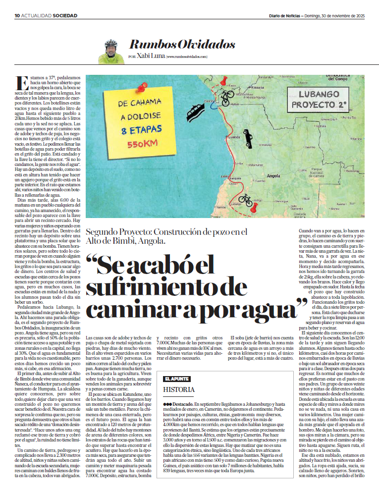 Hay pasado casi siete meses cuando cruzamos la frontera a República del Congo, teníamos nuestras dudas de si el ferry desde Soyo a Cabinda funcionaría, de si el paso fronterizo sería seguro por el frente de liberación, de si llegaríamos a Point Noire para enviar el artículo, pero todo salió bien y pude escribir una reflexión sobre la experiencia vivida en la construcción del pozo en el Alto de Bimbi en Angola. La comunidad Ñaneca podrá beber agua sin caminar tanto y ser parte de ello fue increíble. De eso trata el artículo y de la importancia del agua.