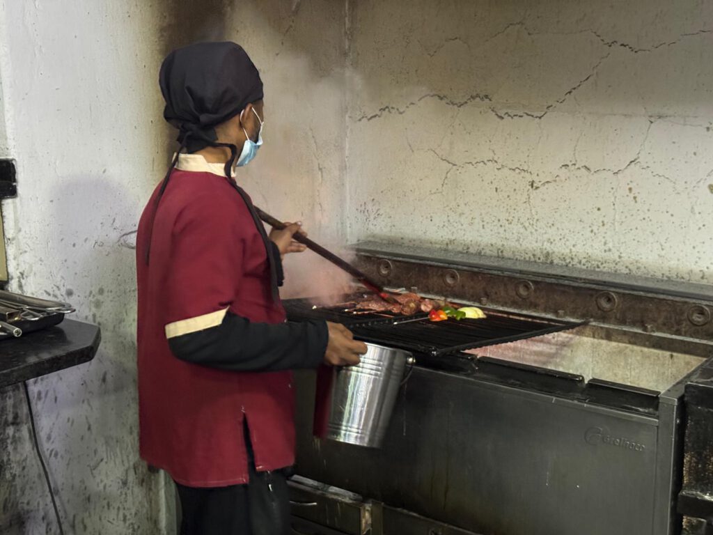 Llevamos casi una semana en Lubango, estamos alojados en casa de Emanuel, un arquitecto portugués que lleva viviendo 16 años en Angola. Nos ha acogido como a unos hijos y nos lleva a cenar a un restaurante que le gusta mucho. Pedimos espetada, una brocheta de varias carnes. Sentados en la la mesa escuchamos el chasquido de las brasas cuando el cocinero las ventea. Huele muy bien y el apetito crece por momentos.
