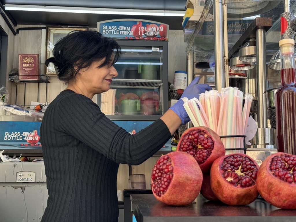 Es nuestro segundo día por las calles de Sarajevo, como suele ocurrir, los centros históricos y las zonas destacables de las ciudades se pueden ver en un día, con lo que caminamos sobre terreno conocido, la calle comercial y donde caminan todos los turistas. Justo al lado del parque donde está la catedral de la Natividad hay varios puestos de zumo de granada. Uno es una cápsula de metal que parece un frigorífico enorme, conforme te acercas escuchas un sonido neumático y descubres a la mujer sacando el máximo a cada granada.