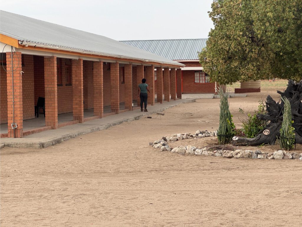 Hemos acabado la etapa en Sekoma, en el mapa hemos visto un colegio y por caminos de arena llegamos a un centro muy cuidado. El director nos recibe en su despacho y nos cede el espacio del aula de los más pequeños, la más bonita y limpia. A la tarde después de ir a la gasolinera a comer algo, regresamos para filtrar agua y asearnos en unos baños que tienen duchas. Estamos dentro de los aseos y una profesora o mujer del centro no es consciente de nuestra presencia, creyéndose sola canta relajada, sin saber que desde el otro lado del muro la escuchamos. Llena el aire con su energía y la escuchamos alejarse.