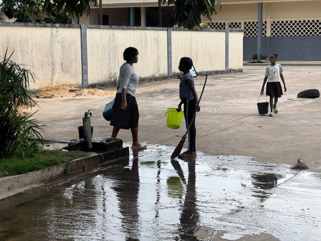 Las monjas nos han alojado en una habitación sencilla, pero acogedora, quieren que estemos bien y se afanan en que todo esté limpio. Hay varias chicas internas que viven en el recinto, aprenden a leer, escribir, cocinar, coser y ser útiles en la vida. Al atardecer limpian el suelo del recinto, las lluvias traen barro y se mancha mucho el suelo.