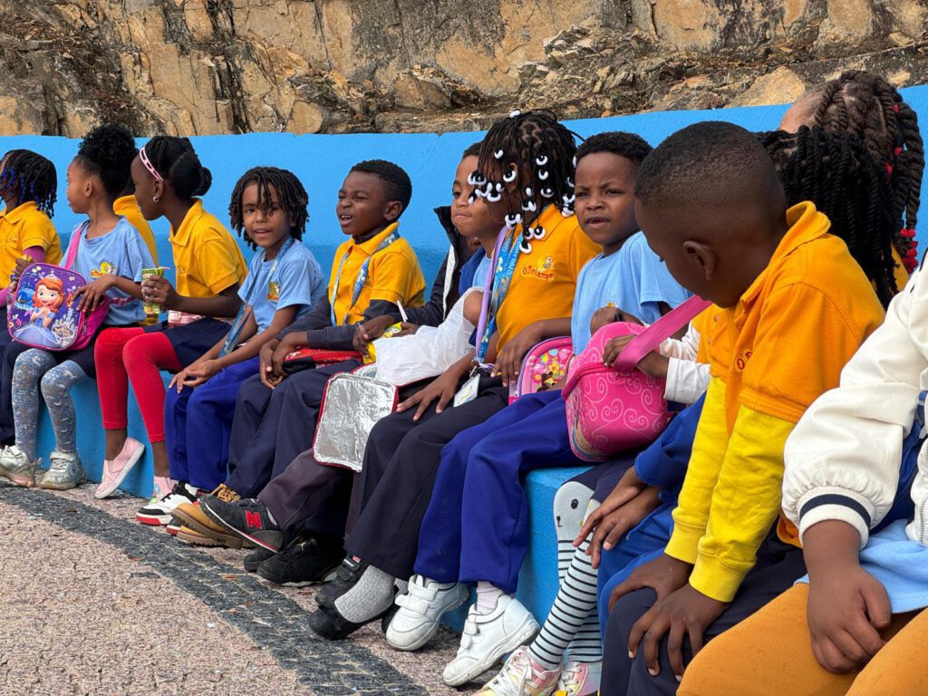 Llevamos tres días en Lubango, en la región de Huila en Angola. Hemos llegado al lugar donde contruiremos un pozo de agua. El lugar será el alto de Bimbi de la tribu Ñaneca. Al segundo día hemos subido hasta el lugar y nos han enseñado ya la perforación, queda construir toda la obra seca. Llega el fin de semana y aprovechamos para conocer la zona, Tundavala, el alto de Leba, Cristo Rey y nuestra señora del monte. Cuando subimos a la pequeña iglesia, además de las vistas a toda la ciudad, hay un grupo de niños cantando canciones religiosas. Cuando me acerco a grabarles, las profesoras orgullosas animan a los estudiantes a cantar más alto.