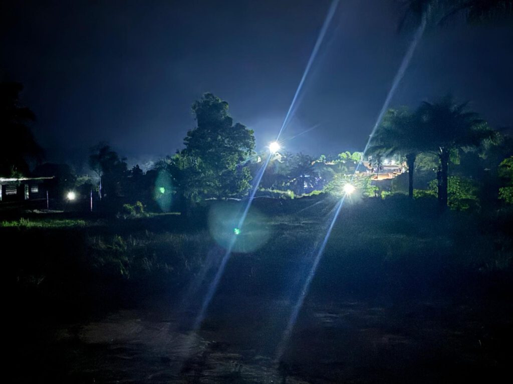 Hemos acabado etapa en Malele, a la mañana salimos de Point Noire y ya enfocamos nuestra ruta hacia el interior del Congo, sabemos que van a llegar las lluvias. El perfil es un constante sube y baja y queremos llegar al final de etapa para descansar. En el mapa sale una iglesia donde queremos dormir, pero el edificio es una casita de hormigón con techo de chapa que está cerrada. Un chico nos lleva a la casa del jefe del pueblo para ver donde podemos dormir y nos da las llaves de una casita para profesores donde la escuela. Está en el alto y algo alejada. Estamos muy bien, pero conforme oscurece la música comienza a sonar desde un bar cercano. No hay electricidad en el pueblo, sólo está la luz de la fábrica de brea, los faros de los coches y el bar que con su generador da luz a los neones de colores y al altavoz del que llega música muy alta. Siempre es lo mismo, no sabemos si la gente no se queja o a los de los bares les da igual.